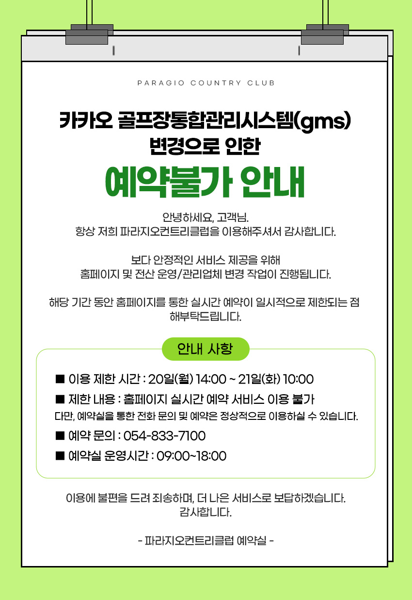 제목 카카오 골프장통합관리시스템(gms)변경으로 인한 예약불가 안내